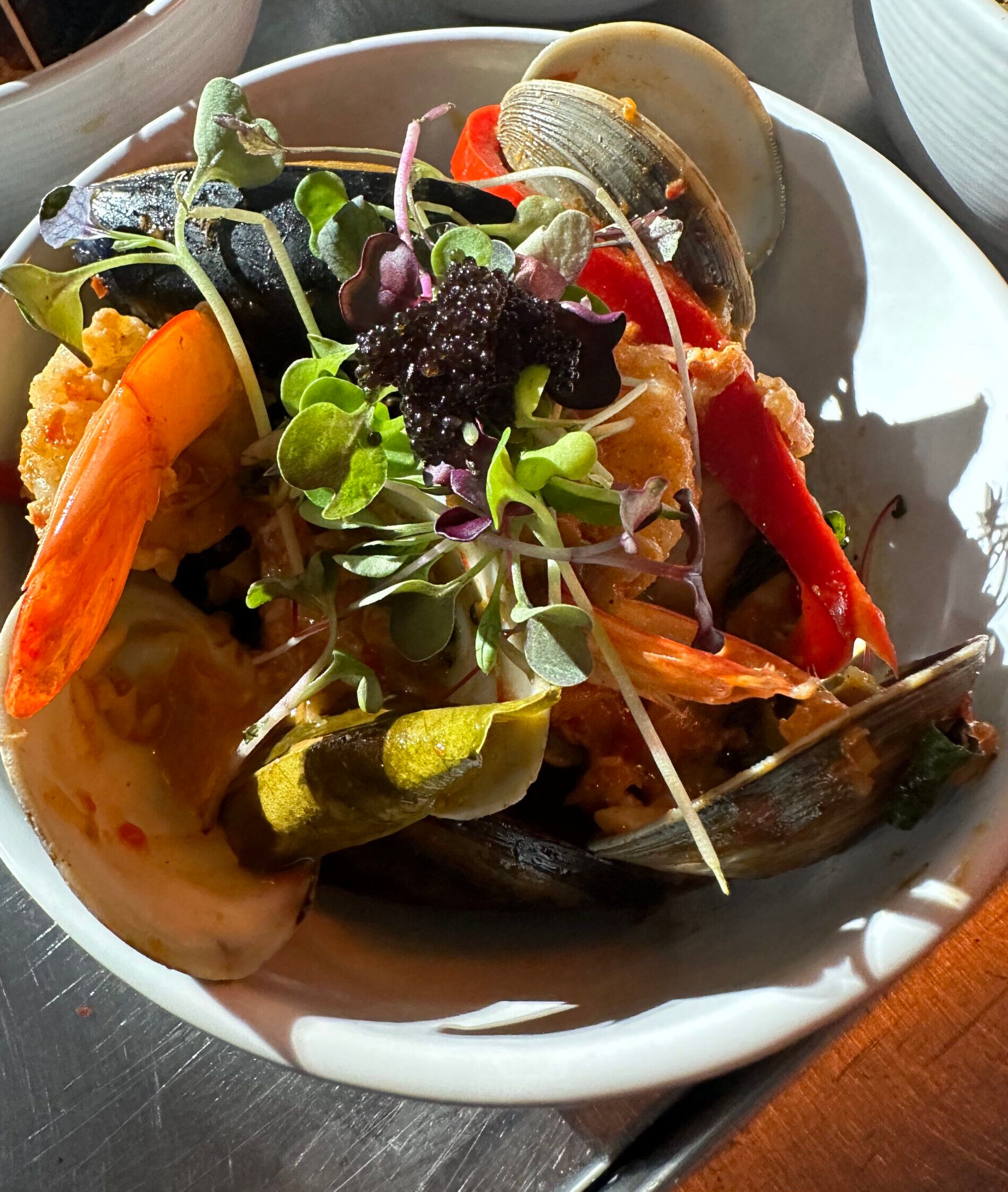 mussels, clams, shrimp, tobiko, lemongrass sambal, coconut broth